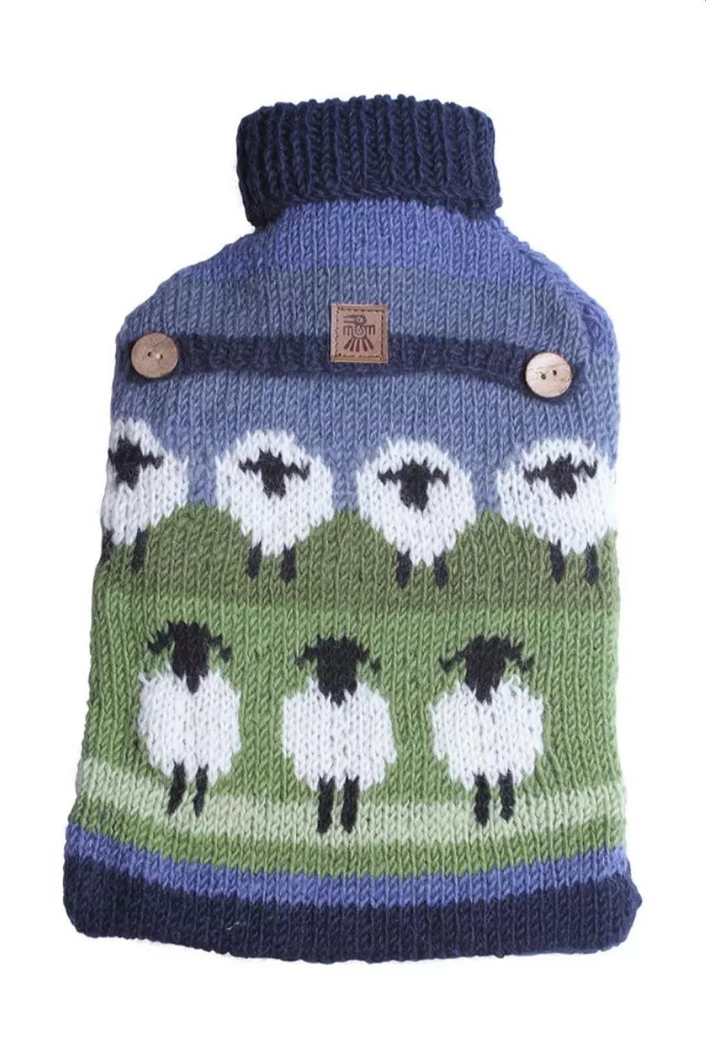 What do we love about sheep? Everything! Pachamama hand knitted wool hot water bottle cover, perfect for lounging, includes 2L hot water bottle. ;The chunky knit traps warm air in the fibres to keep the bottle warmer for longer in bed, on the sofa or for caravans and travel. 100% Wool cover with Coconut button fastening. Fair Trade and Handmade in Nepal. Supplied with a 2 litre hot water bottle (100% rubber with plastic screw cap). Measures approximately 35cm height by 22cm wide.