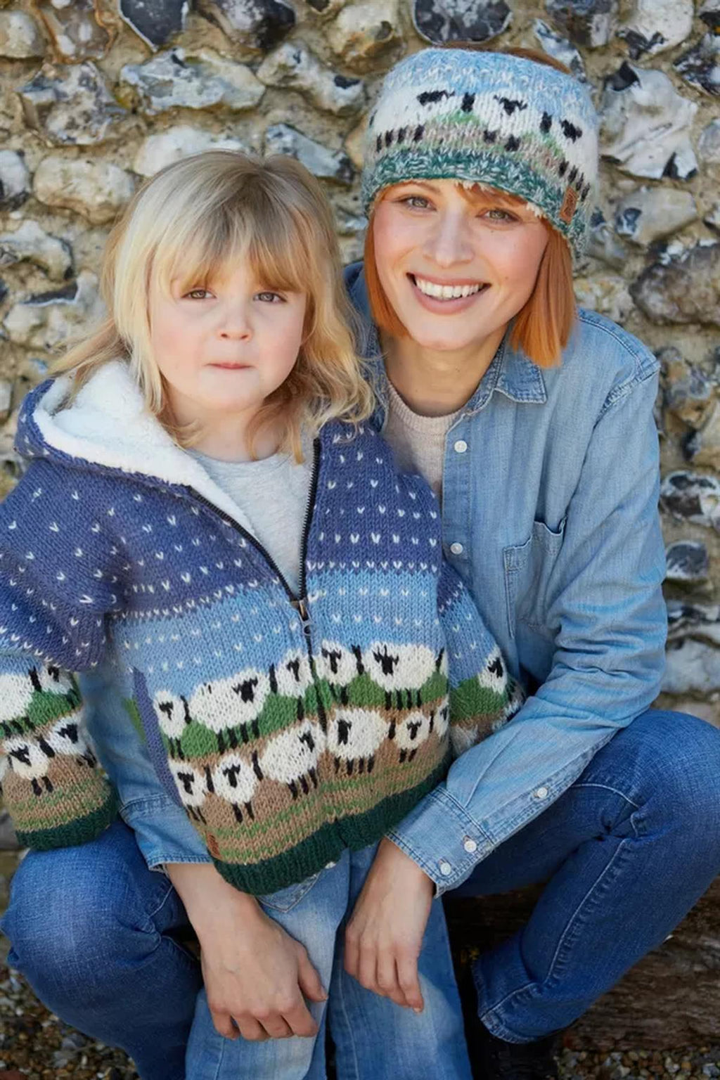 What do we love about sheep? Everything! Sherpa fleece lined for extra cosiness! Women's hand knitted wool mohair blend and sherpa fleece lined headband, with farm animal sheep patterns, fair trade and handmade in Nepal. Wool/mohair blend Sherpa fleece lined Fair Trade and Handmade in Nepal