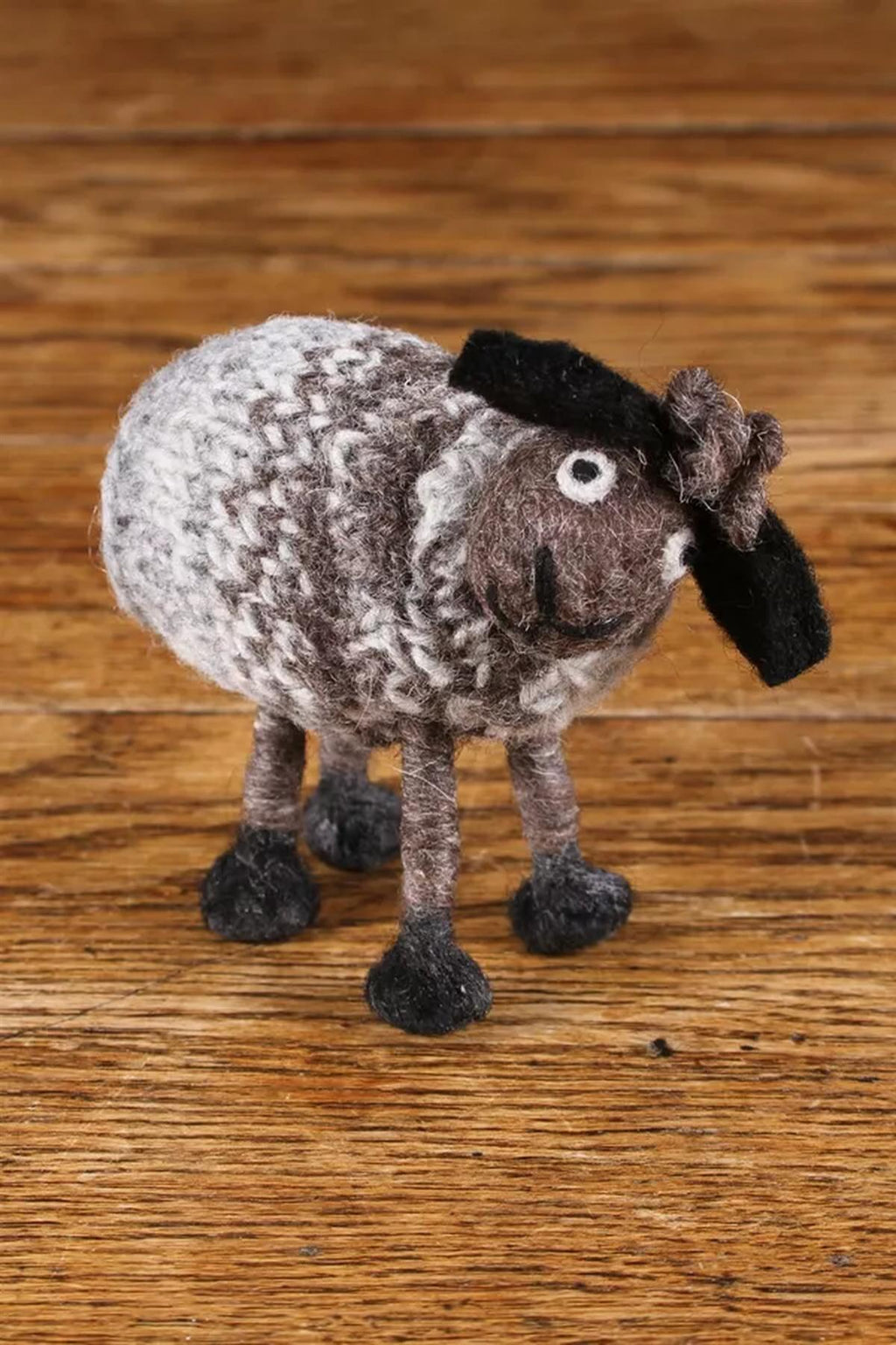 Tina's a real earth Mother so she chose a Classic Fairisle natural tank top. At Pachamama we like to think it was the tank tops that brought Tim & Tina together. But whatever it was the chemistry is plain to see. Approx height 9-10 cm Hand felted wool home ornament, cute animal design. Multicolour lamb. Fair Trade & Handmade in Nepal 100% Wool Felted by hand Please note our decorations are not intended to be used as a toy. Not suitable for children under 36 months due to small parts. Fair Trade and Handmade in Nepal