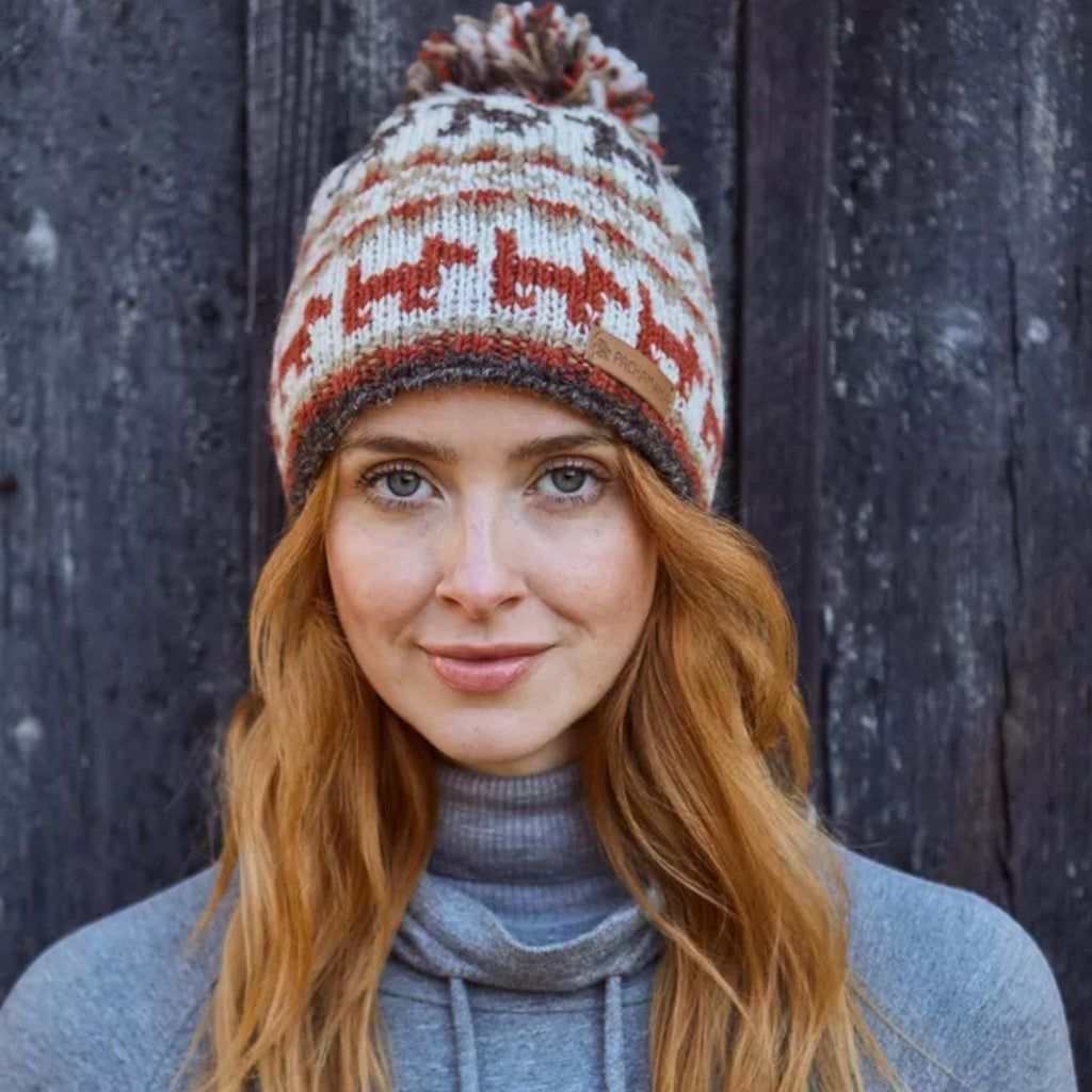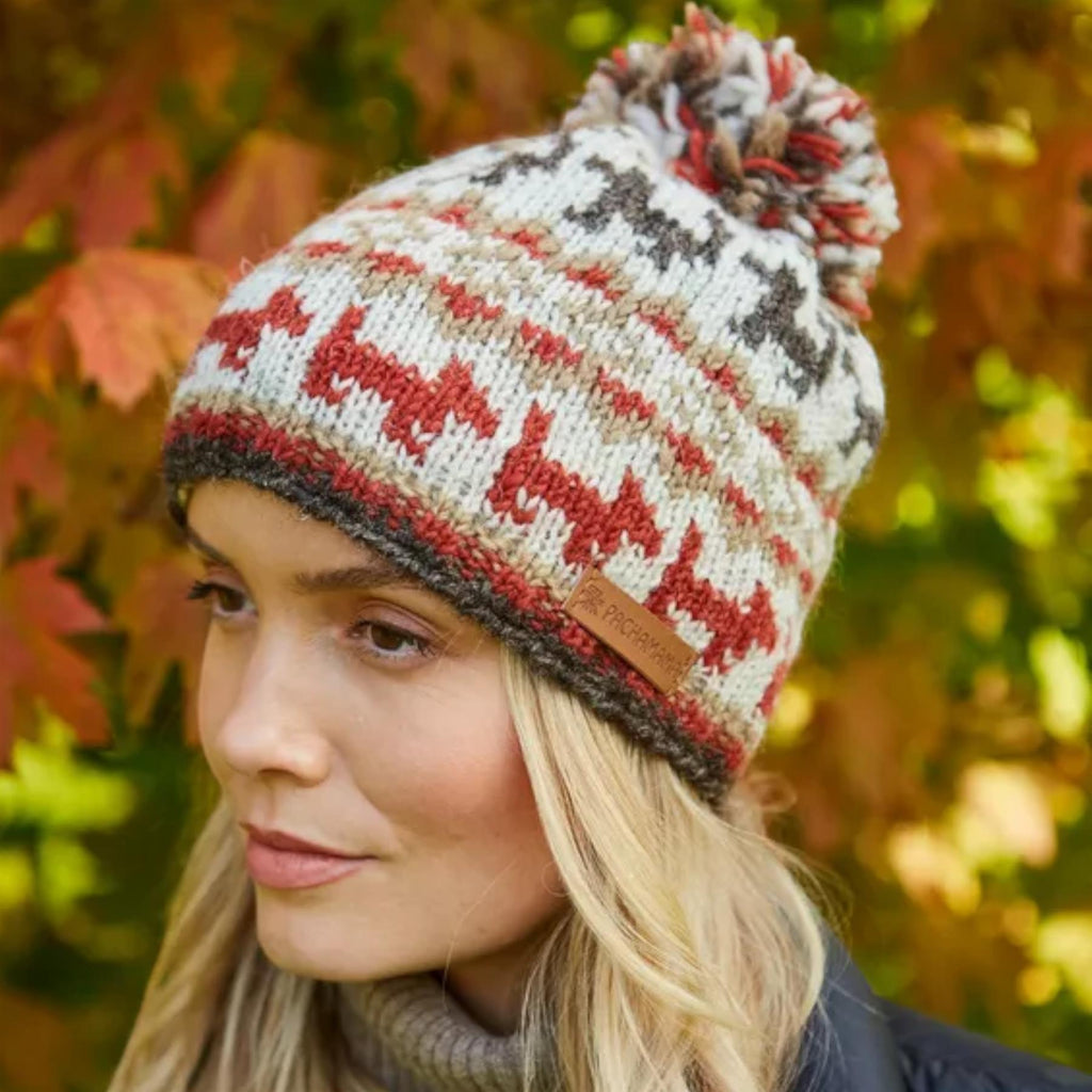 Pachamama 'Walking The Dog' Fair Isle Dog Design All Wool Bobble Beanie Hat